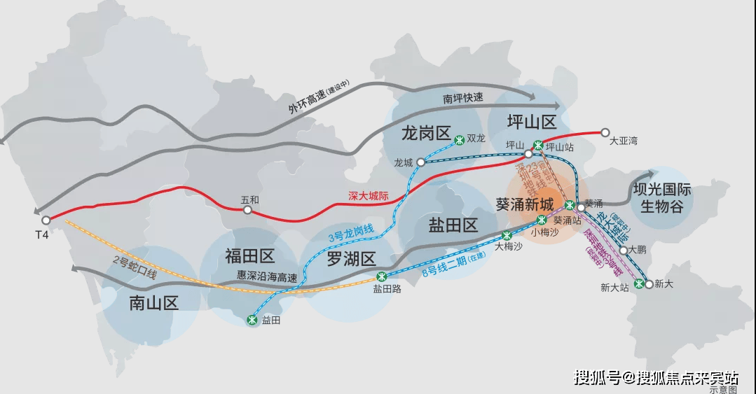 目前大鹏是没有地铁线的,所以从项目出发无法依托地铁出行,附近有已规划的地铁23号线号线KM。将来能够通过地铁32号线号线号线(扶植中),快速畅达全城。项目临近3条从干道,别离是金业大道、坪葵、惠深沿海高速。惠深沿海高速是项目通往深圳各区的一条次要道;沿惠深沿海高速+北环约1个半小时摆布能够达到南区及宝安区;沿惠深沿海高速+罗沙或深南东约1个小时摆布能够达到罗湖及福田区,沿沿惠深沿海高速+武深高速(或南坪快速)+沈海高速约1个小时摆布能够达到龙华区。分析看,项目通往深圳市区的通勤成本比力高,交通收集需要时间。